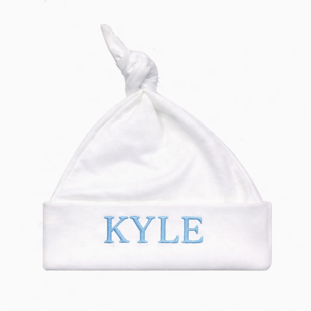 Make these soft, white, cotton gowns an even more precious gift with a knotted hat or headband and the ability to add a personal touch with personalized embroidery.